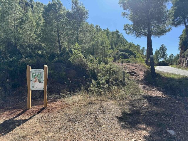 Segueix el rastre dels Dips per trobar la Blanqueta! Troba el rastre del bosc. Hi ha varies plaques amb petjades de dip que et van guiant fins que arribes a un lloc on hi ha la placa final amb un ullal de dip. Intervenció: Clavar els dos pals del plafó amb formigó al terreny de bosc. Clavar entre 8 i 15 plaquetes amb un o dos cargols químics al terreny de bosc.