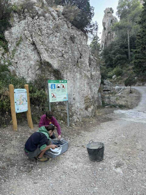 Troba la primera planta! Joc de pistes per seguir un rastre a lo ‘Hansel & Grettel’. Pel voltant del plafó comencen unes marques tipus GR liles (en plaques) que et van portant per un camí fins trobar la segona planta (que serà també una plaqueta). Intervenció: Clavar els dos pals del plafó amb formigó al terreny de bosc. Clavar entre 10 i 15 plaquetes amb un o dos cargols químics al terreny de bosc. Aquesta seria la zona de muntanya per on anirien els jugadors seguint les plaquetes. La placa final amb la planta estaria a la petita pujada de pedra, en alguna de les pedres.